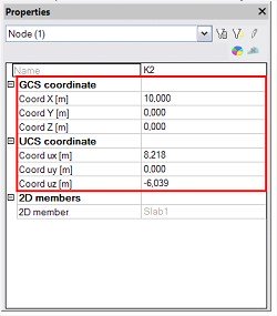 The properties menu of a node always shows its co-ordinates with regard to the GCS and with regard to the active UCS: