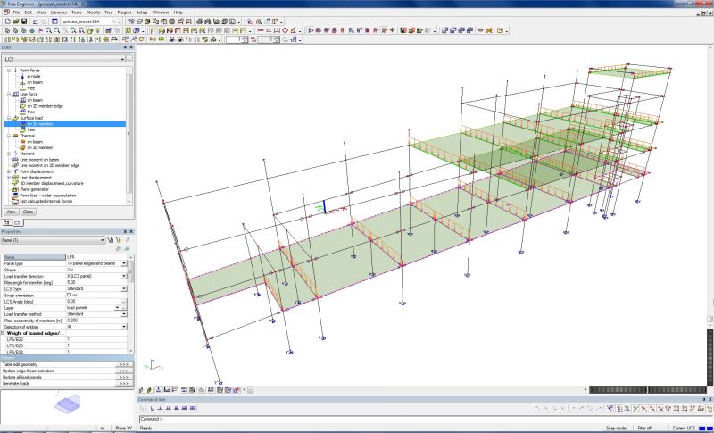Elementy stropowe są prawdopodobnie zaprojektowane w oparciu o ich krytyczne przekroje w płycie, dlatego obciążenie przyłożymy do nich przy pomocy paneli. Dzięki nim program rozłoży obciążenie powierzchniowe pochodzące od płyt na odpowiednie belki konstrukcji nośnej.